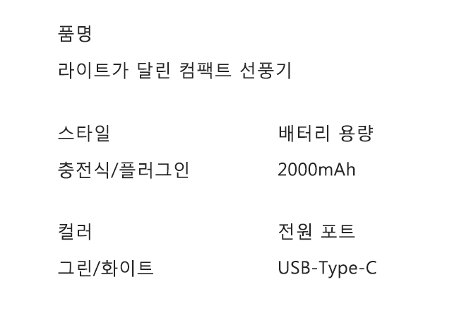 라이트가 달린 컴팩트 선풍기